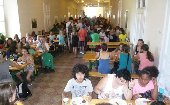 Drei Mal am Tag werden im Priesterseminar die hungrigen Kinder versorgt. Der große Gang wurde zum Speisesaal, wo pro Mahlzeit 1600 Portionen ausgegeben werden. In den Seminarräumen gibt es jede Menge Workshops.