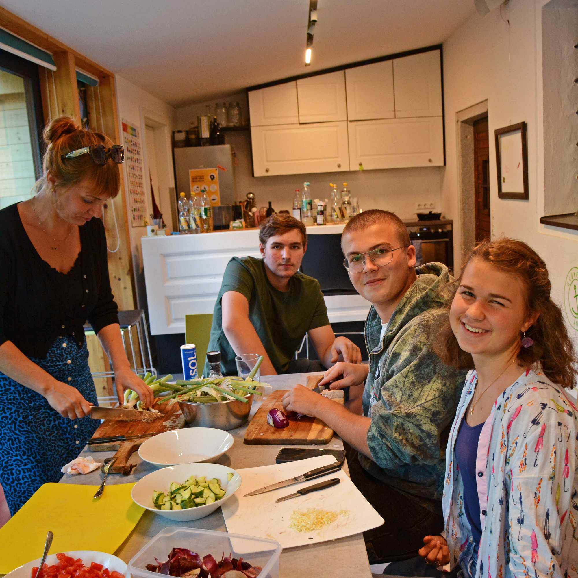 Nach der Sommerpause herrschte große Freude über ein Wiedersehen. Gemeinsam kochen, essen, Fotos schauen und über den Sommer erzählen stand dabei im Mittelpunkt.