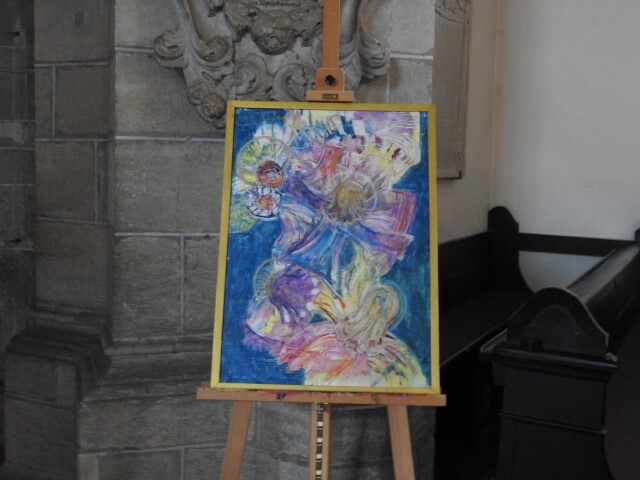 Karl Bräuer, Präsident der Kunstgruppe 2000, betont das gemeinschaftliche Arbeiten der Malgruppe und stellt so die Verbindung zu unserer Glaubensgemeinschaft her: Gemeinschaftssinn stärkt das Gefühl der Zugehörigkeit, verbindet Christinnen und Christen miteinander.