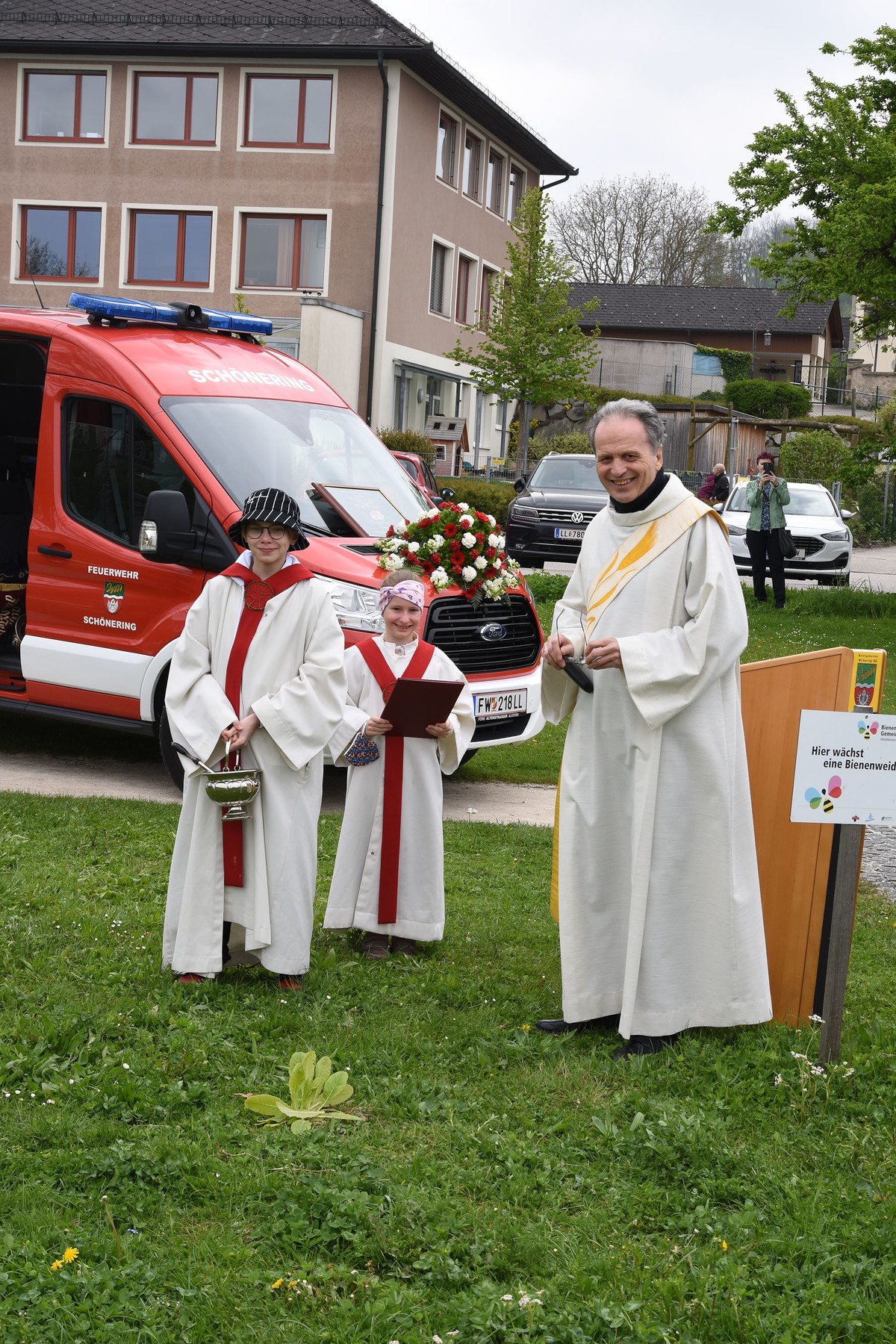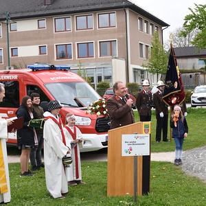 Verbunden wurde dieses schöne Fest mit der Segnung eines Feuerwehrautos. Diakon Johann Hagn segnete das neue Fahrzeug MTF (Mannschaftstransportfahrzeug) der Freiwilligen Feuerwehr Schönering.