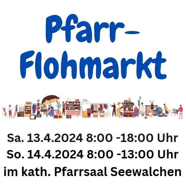 Pfarrflohmarkt Am Samstag, 13.4. und Sonntag, 14.4.2024 findet der Pfarrflohmarkt beim Pfarrsaal statt... mehr: Pfarrflohmarkt